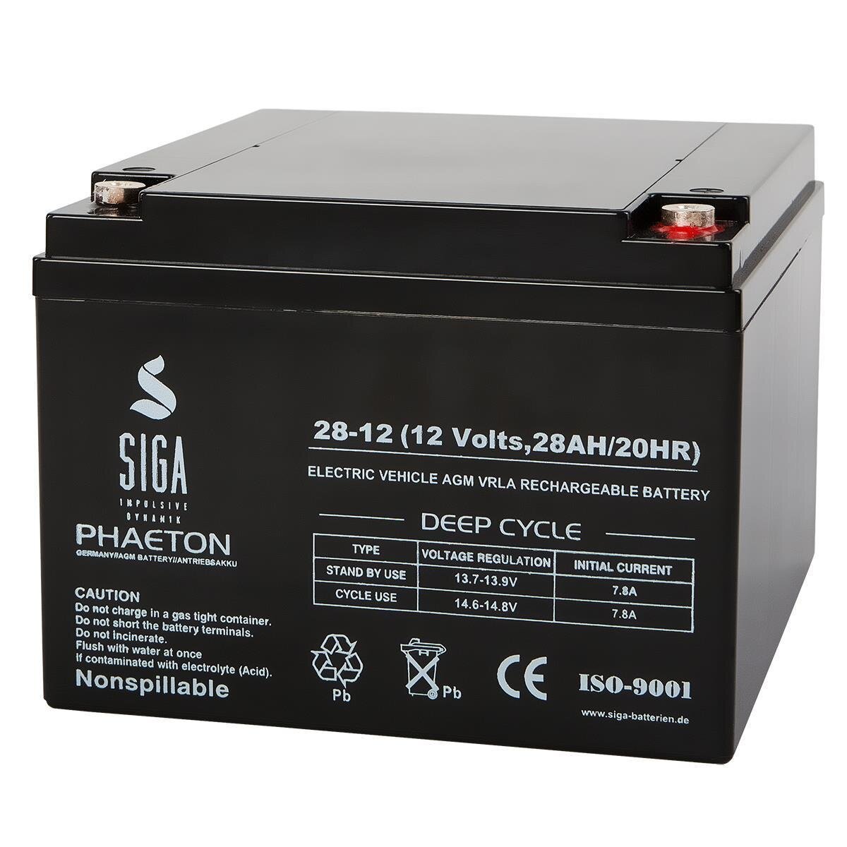 Batteria SIGA Phaeton AGM 28Ah 12V per alimentazione di emergenza