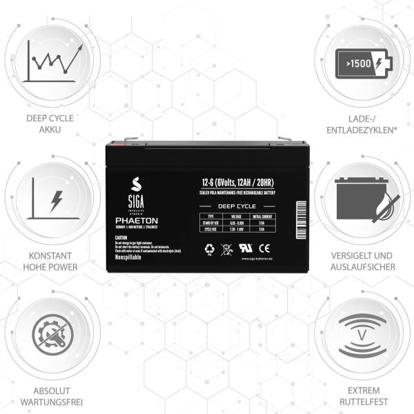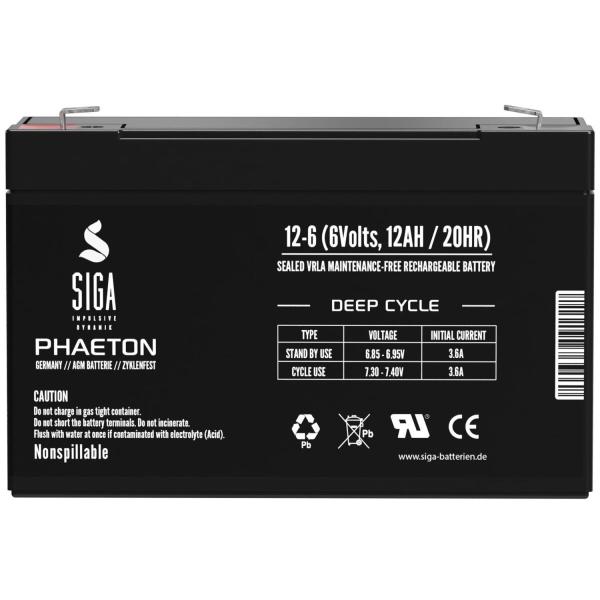 SIGA Phaeton AGM Deep Cycle Akku 12Ah 6V